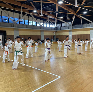 基本稽古、移動稽古、型と審査項目が続き、どの受審者も普段の稽古の成果がよく出ていて、よくできた内容でした。最後は組手の審査では、今回、石岡咲蘭2級が7人組手に挑戦し、見事完遂しました。